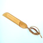 厚めの牛ヌメ革を使用したシンプルな作りのペンホルダーです。一針づつ手縫いで仕上げヘリ部分も丁寧に磨きました。首から吊り下げる革紐付きです。紐の長さは結び目で調整可能です。