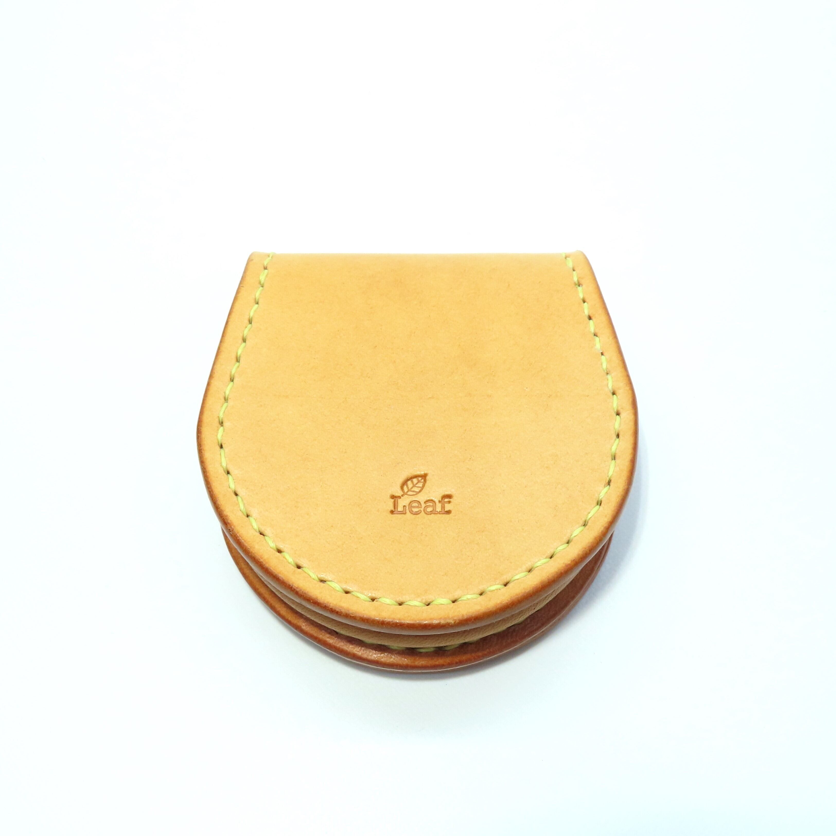 貝の形に似た形状の昔からあるオーソドックスなコインケースです。厚手のヌメ革を使用しコバもしっかり磨いてあります。小さめではありますが30枚程度のコインが収納可能です。